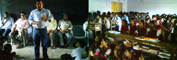 This motivational lecture was organized by Kumara Foundation India division Directors Mr. Mahadeva Rao and Mr.Ramakrishna Rao with help of our most valuable member of Kumara Foundation Mr.S. Devendrakumar, Head Master, Sellagudapatti Elementary School and Mr. Mohamed Yaseen Nasseera MSc, M.Phil, M.A, M.Phil, Vice Principal, TSN College, Chennai. Kumara Foundation thanks the kind help and co operation Barur Government Higher Secondary School Head Master M. Shanmuganathan, Assistant HM and Mr. Anbalagan, MCA, computer science teacher. The 10 th, 11 th and 12 th grade students and their parents attended this talk. This event was a very successful event with lot of positive feed back both from the students and their parents. |